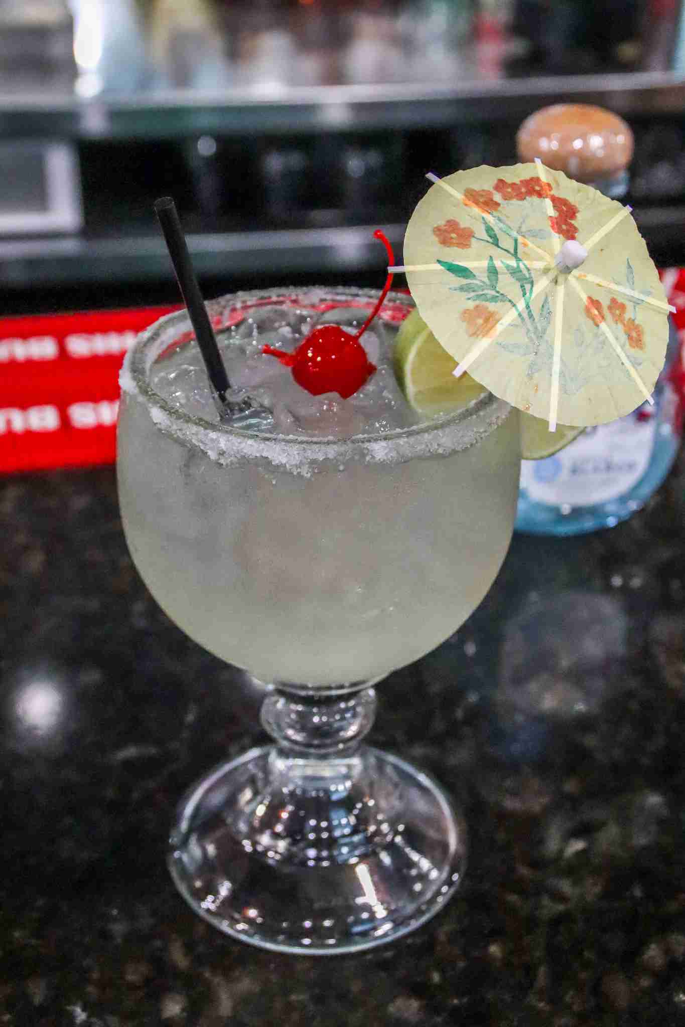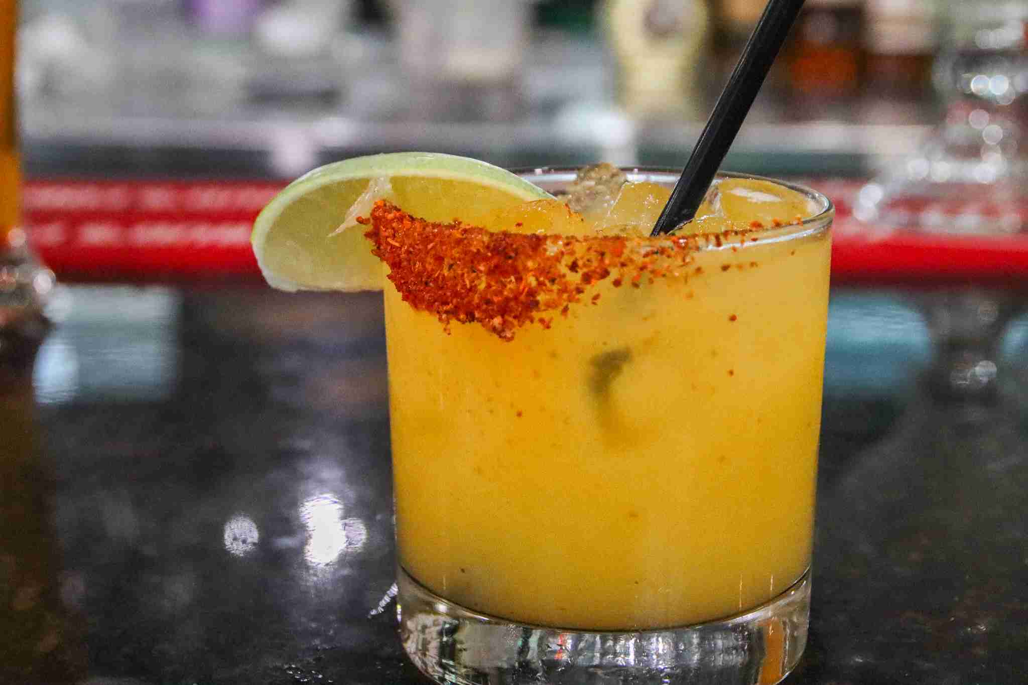 Tequila Fresh Mango, Triple Sec, Lime and Lemon Juice, Rimmed with Chamoy and Tajin Pepper.