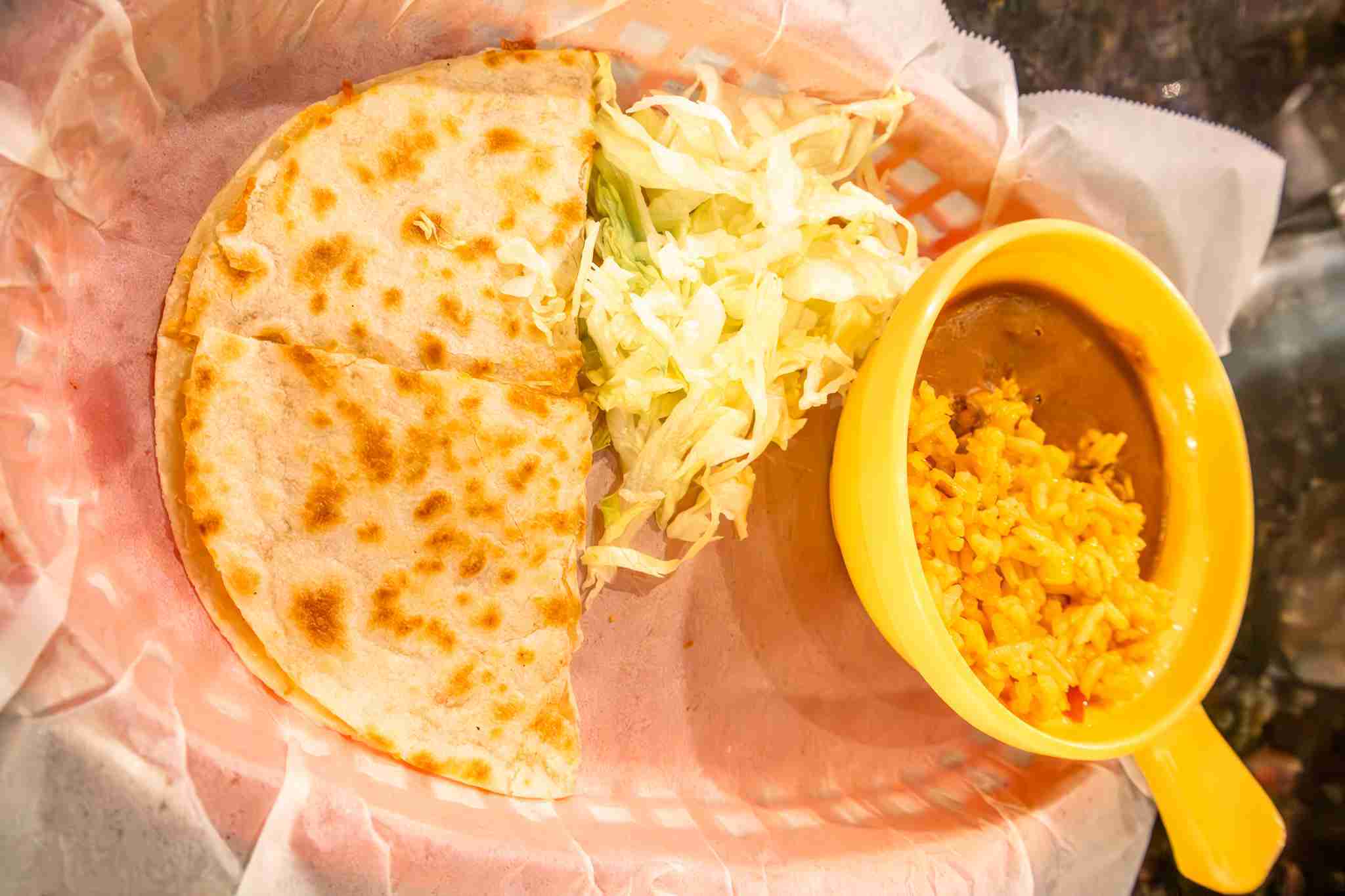 Quesadilla served with rice, beans and lettuce. Kids drinks included, Menu for children under 12 years.