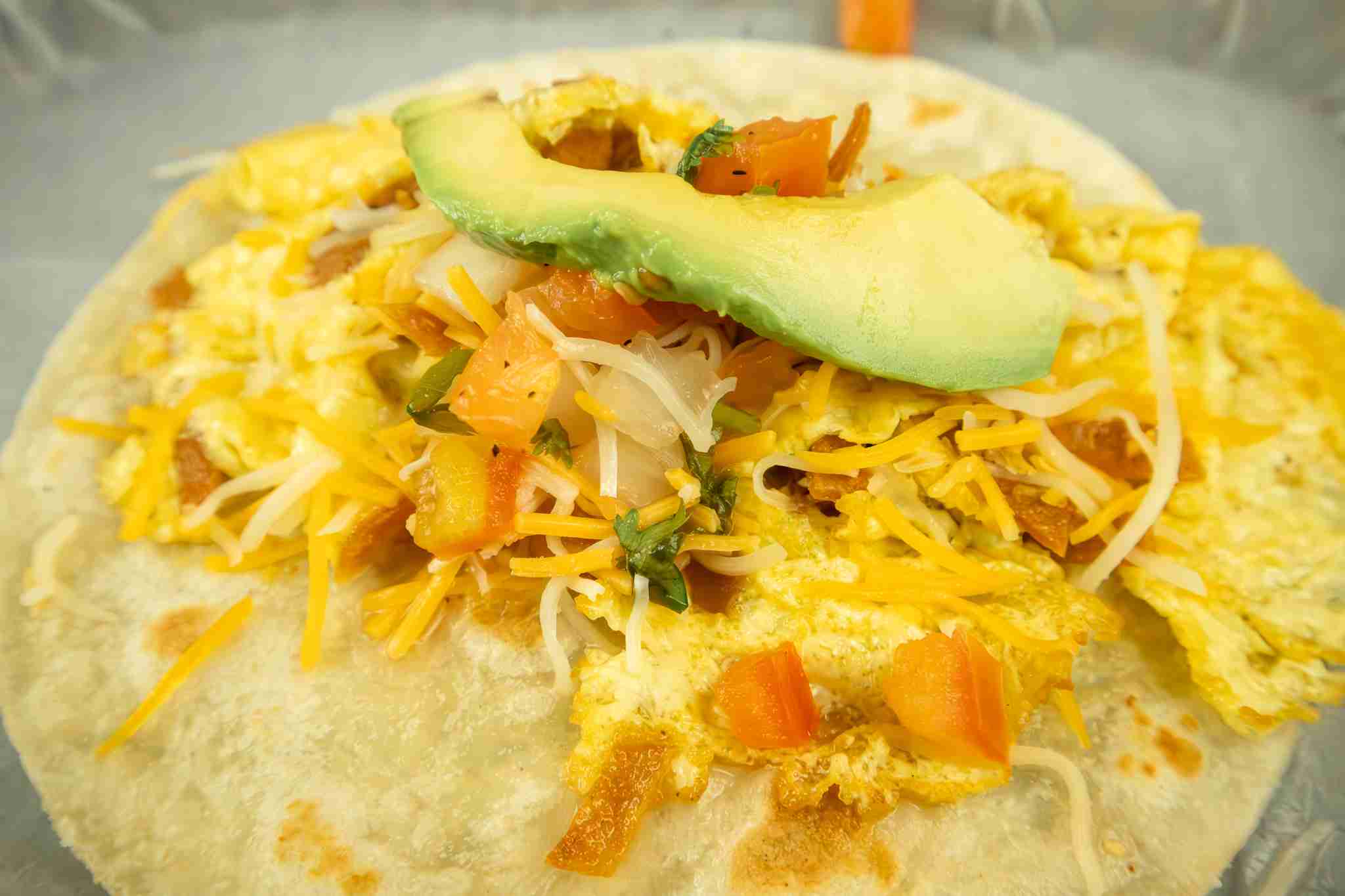 Scrambled eggs, crisp corn tortilla strips, green chiles, avocado, pico de gallo & shredded cheese. Served on your choice of tortilla.